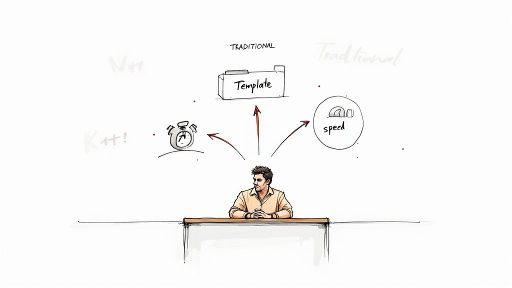 A traditional video editor like Adobe Premiere Pro is your heavy cleaver. It’s an absolute beast for complex, highly creative projects where you need total control over every single pixel. But for the day-to-day grind of a talking-head video? Using it is like trying to peel a grape with that cleaver. It's slow, clumsy, and honestly, just overkill.